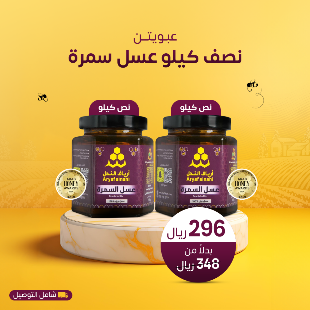 يعتبر عسل السمرة الأصلي من أجود أنواع العسل المتوفرة بمتجر أرياف النحل، وذلك لأنه يتميز بجودته العالية وفوائده الصحية المتعددة، مما يجعله خيارًا مثاليًا لعشاق العسل الطبيعي.مواصفات عرض عسل السمرةالشركة: مؤسسة أرياف النحل للتجارةالإنتاج: مناحل محمد الشابحيالتعبئة: عرض 500 جرام (عبوتين)النوع: عسل بلديالوزن: 1 كيلومنطقة الإنتاج: مكة المكرمةمصدر العسل: شجرة السمر (Acacia tortilis)خصائص العسل: عسل شوكي، كثافة ثقيلة، لون أحمر أقرب إلى السواد، ومذاق قوي.مميزات عرض عسل السمرةعناصر غذائية متكاملة: يحتوي على العديد من الفيتامينات الضرورية لجسم الإنسان والأحماض الأمينية.طعم رائع: يتميز بطعمه اللذيذ والغني بالفوائد.نقاء وجودة: يتم إزالة شوائب الطلح الطبيعي والسمرة الطبيعية منه قبل التعبئة لضمان أعلى مستوى من النقاء والجودة.طريقة حفظ العسلمن الضروري حفظ العسل بشكل صحيح لعدم تلفه، لذا يُنصح بما يلي:استخدم الملعقة الخشبية عند أخذ العسل من الوعاء الزجاجي الأصلياحذر من وضع العسل في وعاء آخر، اتركه في العبوة الأصلية.تجنب حفظ العسل في مكان متقلب الحرارة.فوائد العسلتعزيز المناعة: يساهم في تقوية جهاز المناعة.مفيد للجهاز التنفسي: يساعد في تخفيف أعراض البرد والسعال.مضاد للبكتيريا: يحتوي على خصائص مضادة للبكتيريا تساعد في الوقاية من العدوى.زيادة الطاقة: يمنح الجسم الطاقة والنشاط اللازمين لأداء الأنشطة اليومية.تحسين صحة الجلد: يمكن أن يساعد في تحسين صحة الجلد.تحسين الهضم: يساعد في تحسين عملية الهضم.مصدر غني بالفيتامينات: يحتوي على فيتامينات وأحماض أمينية ضرورية لصحة الجسم.مضاد للأكسدة: يحتوي على مضادات الأكسدة التي تحارب الجذور الحرة وتحسن صحة الجسم بشكل عام.تنظيم مستويات السكر: يمكن أن يساعد في تنظيم مستويات السكر في الدم عند تناوله باعتدال.تحذيرات الاستخدامتنبيه: هذا المنتج يحتوي على حبوب اللقاح، لذا يُرجى تجنب استخدامه لمن يعاني من حساسية حبوب اللقاح.أفضل طريقة لتناول العسليمكنك تناول عسل السمرة - الطلح الأصلي كمُحلَّى لبعض الأطعمة؛ مثل:الزباديالفواكهالشايالحليبيُمكنك الحصول على عرض عسل السمرة بسعر مذهل من أرياف النحل، وأضف القيمة الغذائية المتكاملة إلى نظامك اليومي، كما يُمكنك طلب عرض 4 عبوات عسل الأرياف 2 كيلو، عرض عبوتين من القتاد والضبيان بسعر مثالي أيضًا.