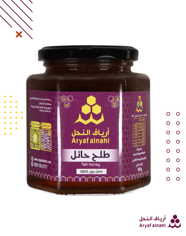 يتميز عسل طلح بفوائده المتعددة، فهو يعتبر من أبرز عسل المناطق الجبلية والبرية، حيث يتميز بخصائصه الفريدة، فهو يساعد على الوقاية من الأمراض، وسوف نعرض لكم أهم مواصفاته وفوائده المتعددة.* ملاحظة : قد يختلف لون العسل والقوام حسب موسم الإنتاج*مواصفات عسل طلح حائل المنطقة الإنتاج: حائل.نوعية الإنتاج: مناطق جبلية وبرية.مصدر الزهري: الطلح (Acacia gerrardii).الرائحة: مميزة.اللون: عسل داكن.النكهة: نكهة الطلح قوية.القوام: ثقيل ولزج.المذاق: شديد.قابلية التغير: يختلف لونه وقوامه حسب موسم الإنتاج.فوائد عسل طلح حائلتعزيز جهاز المناعة وزيادة مقاومة الجسم للأمراض: عسل الطلح يحتوي على مواد غذائية ومركبات مضادة للأكسدة تُعزز نشاط جهاز المناعة، مما يساعد الجسم على مقاومة الأمراض والعدوى.مساعدة في حالات فقر الدم، الصداع، الأرق، وقلة التركيز: يحتوي عسل الطلح على مجموعة من العناصر الغذائية والمواد الطبيعية التي تُساعد في علاج حالات فقر الدم وتخفيف الصداع والأرق وزيادة التركيز.تنظيم مستويات السكر في الدم: مكونات عسل الطلح تُساعد في تحسين حساسية الخلايا للأنسولين، مما يقلل من مستويات السكر في الدم ويُنظمها، مما يجعله ملائمًا لمرضى السكري.الوقاية من حب الشباب ومعالجة آثاره: خصائص مضادة للبكتيريا والالتهابات في عسل الطلح تُساعد في الوقاية من حب الشباب وعلاج آثاره بفعالية.التسريع في شفاء الجروح ومعالجة الالتهابات: مركبات موجودة في عسل الطلح تُعزز عملية التئام الجروح وتسريعها، كما تُساعد في معالجة الإلتهابات الجديدة بفعالية.محاذير استعمال عسل طلح حائلمن الممكن أن يؤدي إلى الإصابة بالحساسية لدى بعض الأشخاص الذين يعانون من حساسية لمكونات العسل.يُنصح بتجنب تناوله بكميات كبيرة لمرضى السكري بسبب احتوائه على السكر.كيفية حفظ عسل طلح حائليُفضل حفظ عسل الطلح في ظروف معينة للحفاظ على جودته وطول فترة صلاحيته، وإليك كيفية حفظه:وضعه في العبوة الأصلية: لا تقم بوضعه في أي عبوة أخرى.الابتعاد عن الرطوبة: يجب تخزين عسل الطلح في مكان جاف وبعيدًا عن الرطوبة، حيث يمكن أن تؤدي الرطوبة إلى تلف العسل وتغير نكهته وقوامه.التخزين في درجة حرارة مناسبة: يُفضل تخزين عسل الطلح في مكان بارد ومظلم، مثل خزانة المطبخ أو الثلاجة، وذلك للحفاظ على جودته ومكوناته الغذائية.عدم التعرض للهواء: يُفضل إغلاق العبوة بإحكام بعد كل استخدام لمنع دخول الهواء إليها، حيث يمكن أن يؤدي التعرض المستمر للهواء إلى تأكسد العسل وتغير طعمه وجودته.عدم التعرض للحرارة الزائدة: يجب تجنب تعريض عسل الطلح لدرجات حرارة عالية، مثل التعرض المباشر لأشعة الشمس أو وضعه بالقرب من مصادر الحرارة، حيث يمكن أن يؤدي ذلك إلى تلف العسل.يعتبر عسل طلح من أنواع العسل ذات القيمة الغذائية والصحية العالية، حيث يحتوي على مجموعة واسعة من العناصر الغذائية والمركبات النشطة التي تعزز الصحة وتحافظ على الجسم بأفضل حالاته، فلا تتردد في طلبه الآن من متجر أرياف النحل، لتعزيز صحتك العامة.واطلب أيضًا: خلطة أرياف النحل عرض عبوتين من القتاد والضبيان